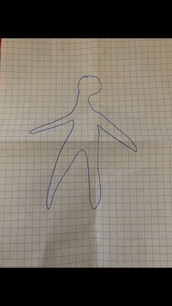 Pour vous donner un exemple, j’ai réalisé dans le cadre d’une séance chez ma psychologue (qui a d’ailleurs l’adresse de ce blog et qui lira peut-être ces lignes) une représentation physique de moi-même et le seul dessin que j’ai pu réaliser ressemblait à un traçage au sol qu’on voit dans les scènes de crime et qui entoure un cadavre. Voilà, grosse ambiance toujours.